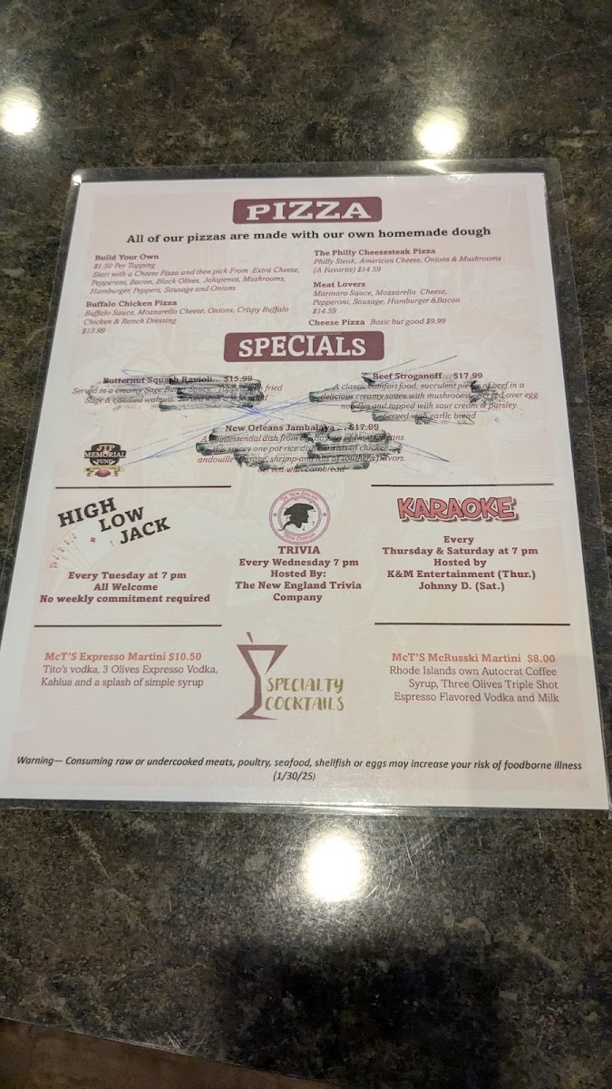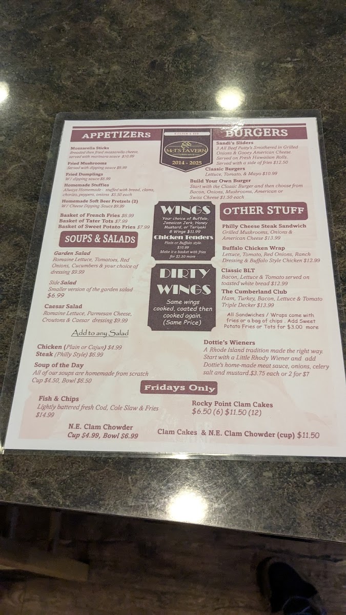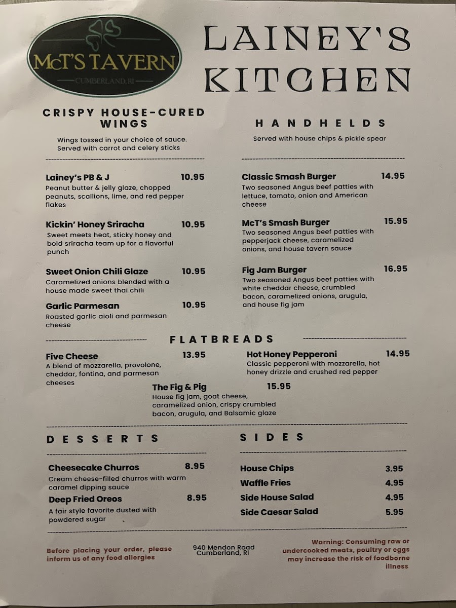 McT'S Tavern Menu
